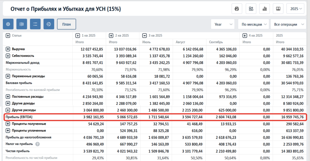 Рентабельность по EBITDA = (EBITDA / Выручка) × 100%