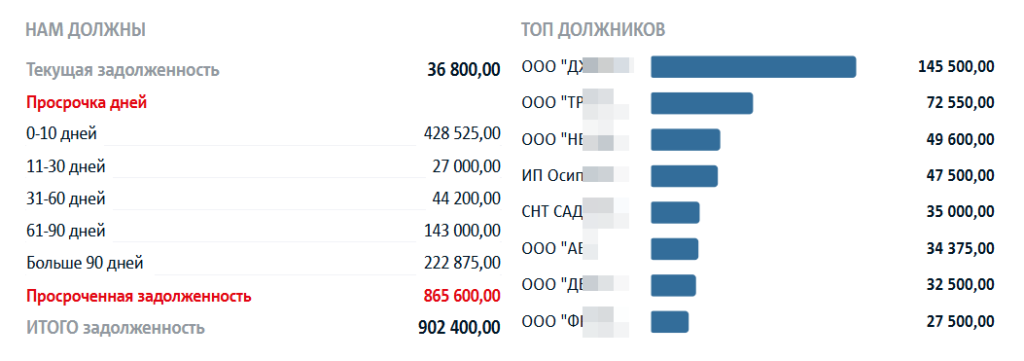 Теперь сервис автоматически рассчитывает текущую и просроченную задолженность по каждому клиенту и по всем клиентам компании.